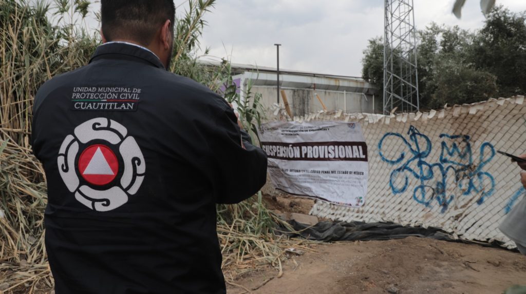 Cuautitlán, Méx.- En seguimiento a denuncias ciudadanas y a una revisión directa de la zona, el Gobierno Municipal de Cuautitlán, encabezado por la presidenta Juanita Carrillo y a través d ela coordinación de protección civil y bomberos procedió este martes a la colocación de sellos de suspensión en una obra ubicada a un costado del Tren Suburbano, debido al incumplimiento de medidas de seguridad y normativas municipales.