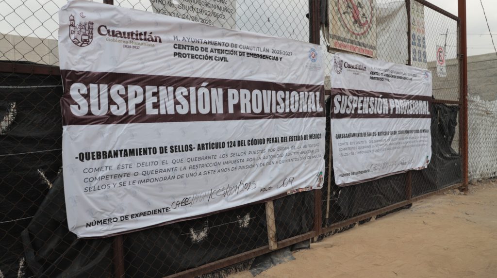 “Esta obra no tiene viabilidad social ni urbana. Ya fue clausurada previamente por Protección Civil, y a pesar de que la empresa ha decidido denunciarme por la vía civil, no vamos a ceder. Mi responsabilidad es defender a Cuautitlán y lo haré por todas las vías legales necesarias”, subrayó Carrillo.