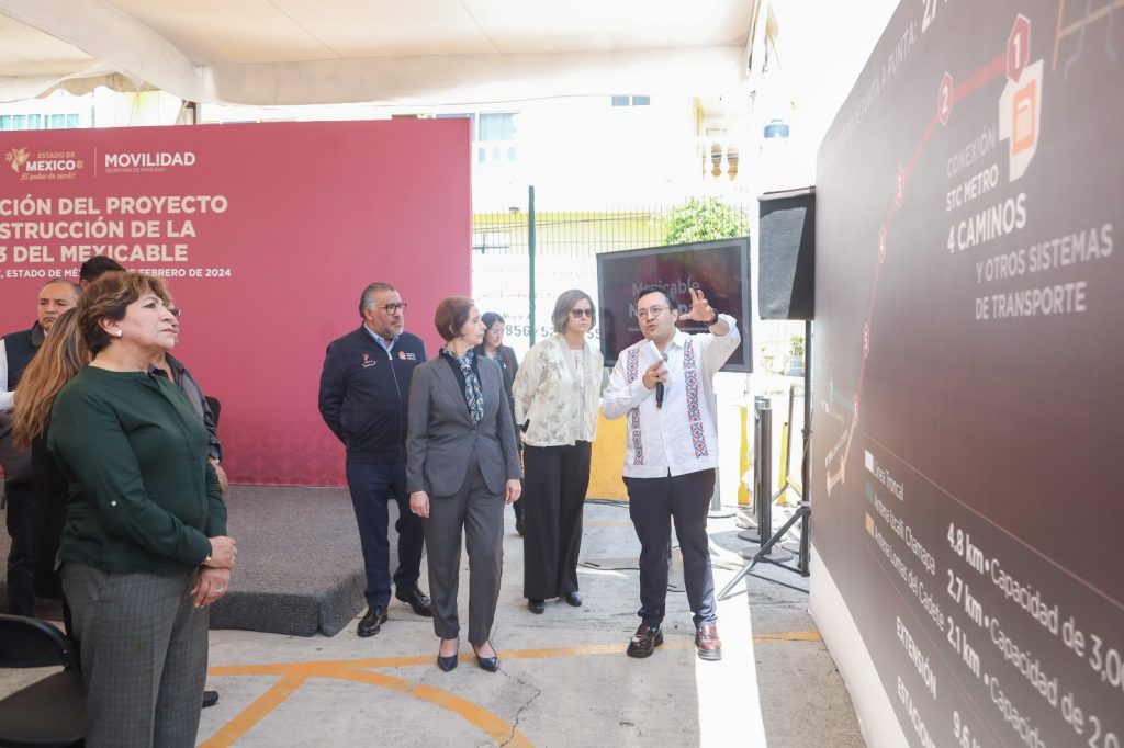Naucalpan, Méx.- La Gobernadora Delfina Gómez Álvarez anunció que, para mejorar las condiciones de movilidad de los mexiquenses que viven en el Valle de México, se construirá la Línea 3 del Mexicable, la cual conectará a las zonas altas de Naucalpan con la estación Cuatro Caminos de la Línea 2 del Sistema de Transporte Colectivo Metro en la Ciudad de México.