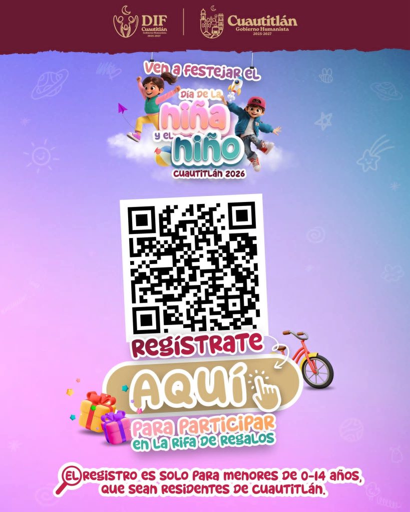 Cuautitlán, Méx.- El Sistema Municipal DIF Cuautitlán, en coordinación con el Gobierno Municipal 2025–2027, invita a las familias a celebrar el Día de la Niña y del Niño con un evento lleno de alegría, sorpresas y entretenimiento para las y los más pequeños del hogar.