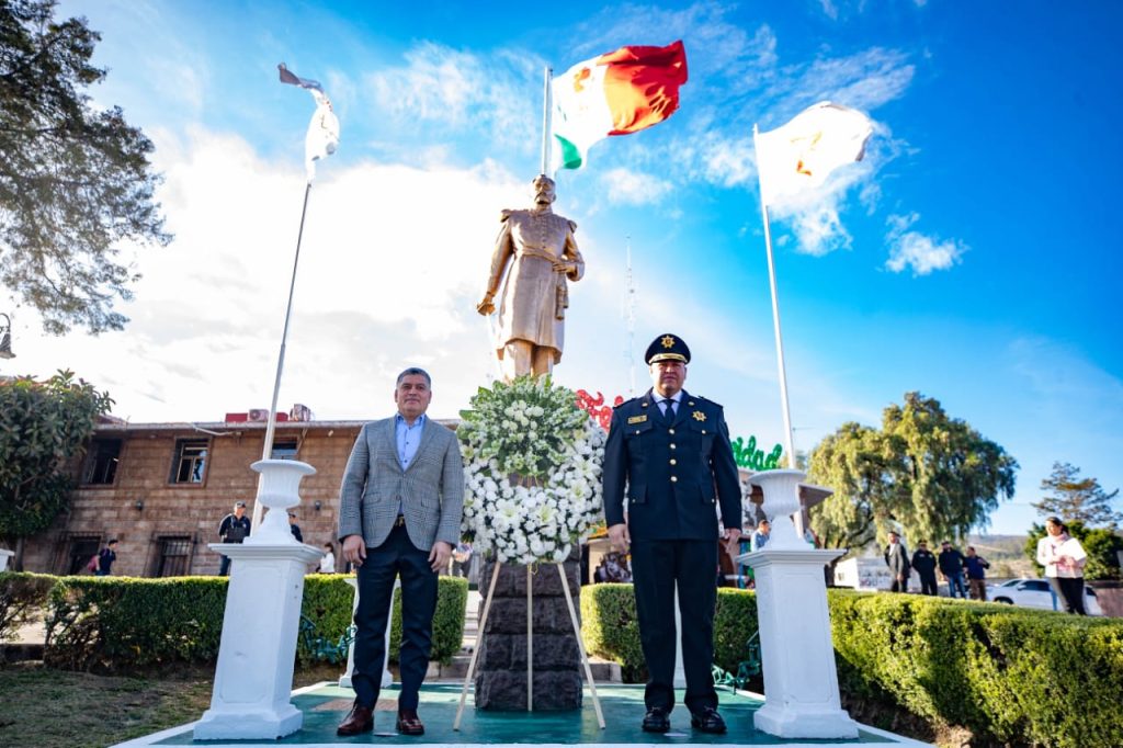 Coacalco, Méx.- Para conmemorar el “CXXIV Aniversario Luctuoso de Felipe B. Berriozábal Basabe”, el presidente municipal, David Sánchez Isidoro y el comisario, Armando López Arteaga montaron guardia de honor y depositaron una ofrenda floral a los pies de la estatua del general.