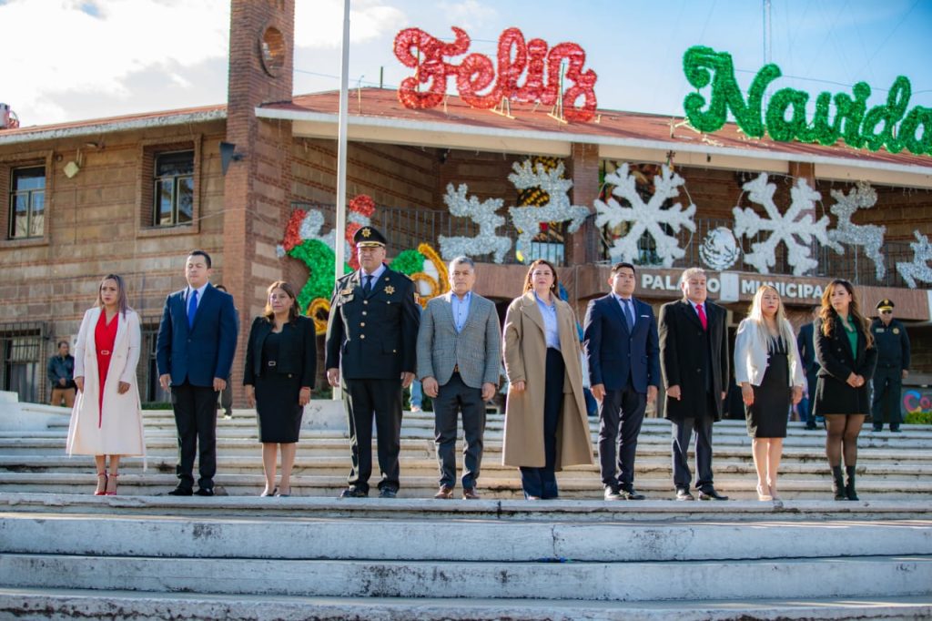 En la ceremonia cívica, el alcalde Sánchez Isidoro estuvo acompañado de integrantes del cuerpo edilicio y de servidores públicos, así como de la presidenta del DIF municipal, María de Lourdes González Ocampo.