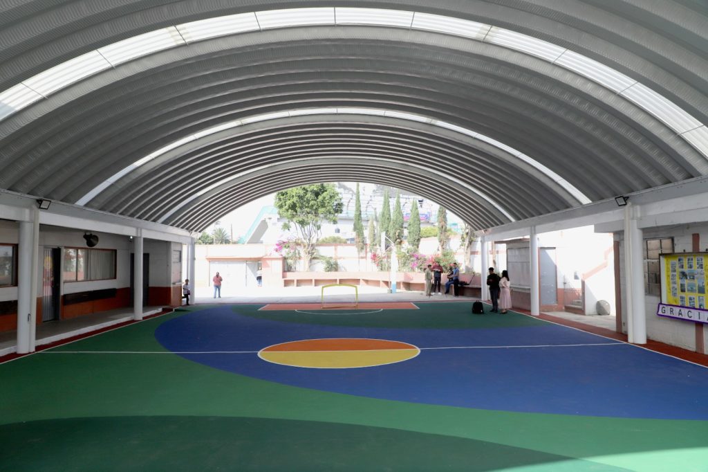 Este año —anunció— se entregarán más estructuras de este tipo en distintos planteles de educación básica y media superior. A este momento se han hecho entrega de 3 y una plaza cívica en un jardín de niños.