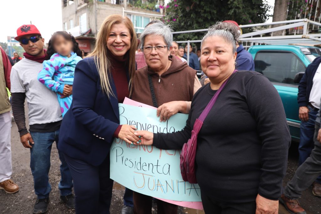 “Estamos transformando Cuautitlán. Esta calle no es para los transportistas, es para ustedes, los ciudadanos. Sabemos que llegar a casa cada vez es más difícil por la falta de infraestructura, por eso estamos haciendo obras que se van a quedar, que les van a servir y que representan la dignidad que merecen”, expresó Juanita Carrillo.