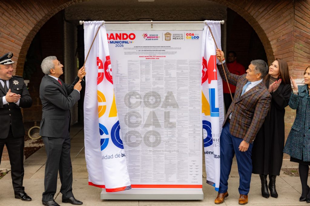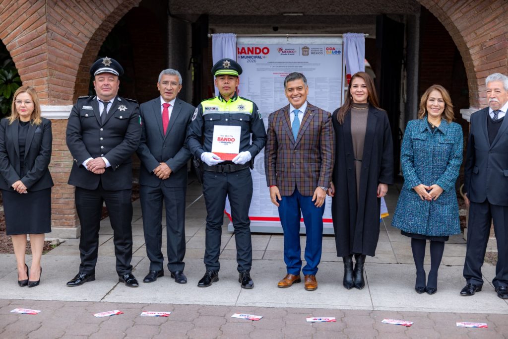 Después de develar la sábana del Bando Municipal 2026, que permanecerá expuesta en la entrada del Palacio Municipal, el alcalde, acompañado por el representante de la Gobernadora del Estado de México, Delfina Gómez Álvarez, el director de Gobierno de la Región Nororiente, Rubén Balderas Alarcón, destacó que el Bando es una guía para una mejor convivencia social, para cuidar entre todos el entorno, manteniendo comunidades limpias y en orden.