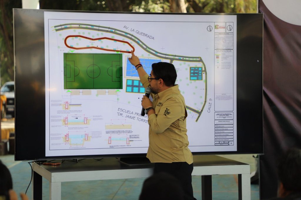 “Vamos a crear canchas deportivas, una trotapista, un área de palapas y de convivencia, así como el gimnasio al aire libre, además de que pondremos gradas para que todo el mundo pueda venir a disfrutar los encuentros”, informó el alcalde, al detallar los trabajos que se realizarán en una superficie de 5,250 metros cuadrados.