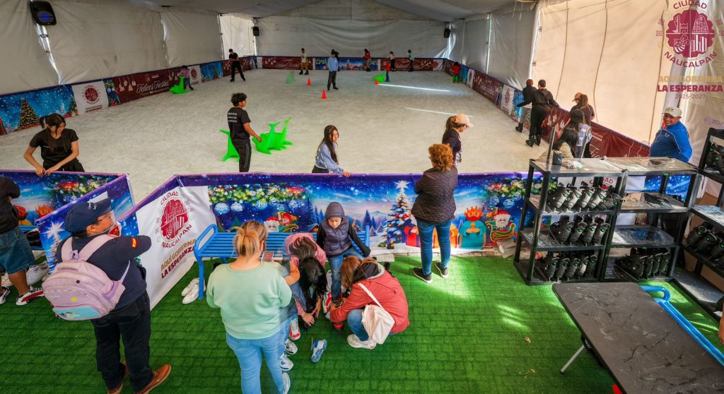 Naucalpan, Méx.- Cientos de niñas, niños, jóvenes y adultos en el marco del Día de Reyes siguen disfrutando de las Pistas de Hielo que el Gobierno de Naucalpan encabezado por el Alcalde Isaac Montoya Márquez, instaló durante las Fiestas de Fin de Año en la Explanada del Palacio Municipal y el Parque La Hormiga, espacios de esparcimiento y convivencia totalmente gratuitos.