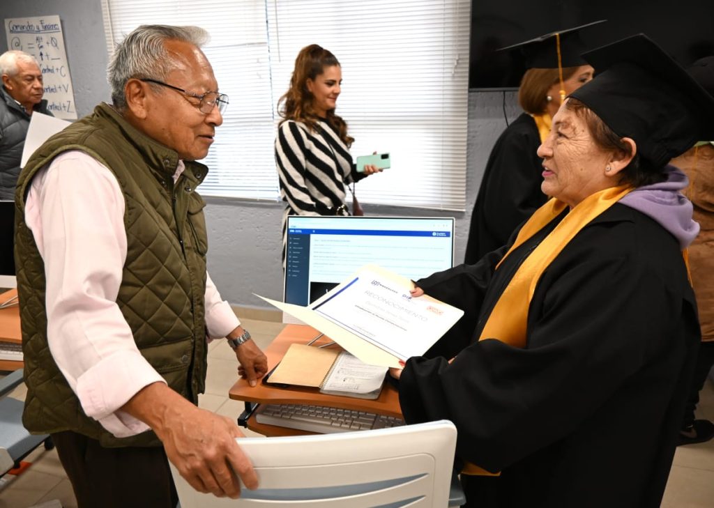 María de los Dolores Gómez Bonilla con otras 20 personas adultas mayores recibieron un reconocimiento por concluir la capacitación, “el curso es muy fácil, muy didáctico, nos permite aprender día a día, por lo que invito a personas mayores de 60 años a continuar aprendiendo, porque es importante el desarrollo para nosotros mismos, nos permite sentirnos útiles para la sociedad”.