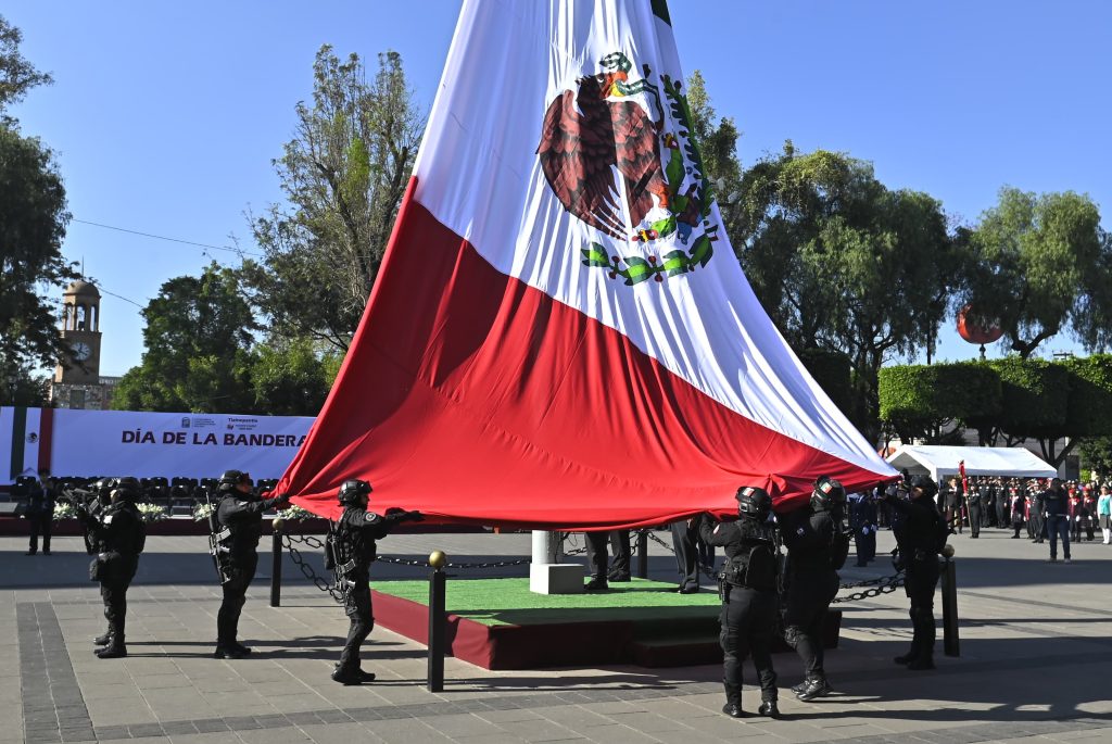 El alcalde recalcó que a la Bandera mexicana todas y todos los mexicanos la honramos y juramos lealtad, ya que es símbolo patrio que representa la unidad nacional, valor y patriotismo en tiempos de paz o cuando la Nación se ve amenazada.