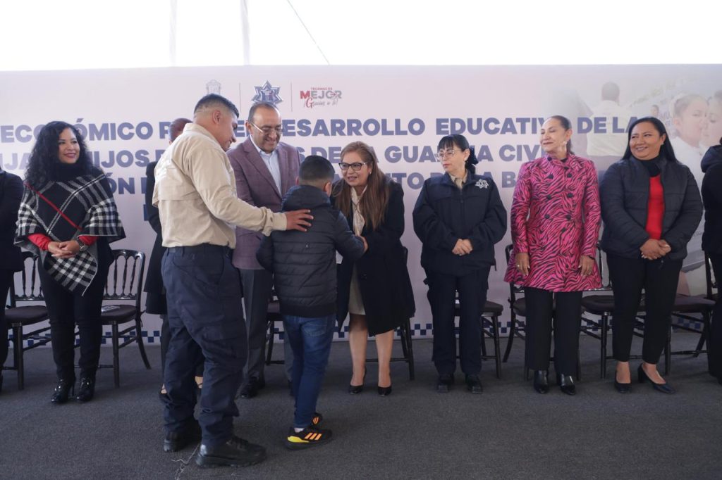 Por su parte, la comisionada de la Guardia Civil, María de Lourdes Cosío Gasca, puntualizó que, con la entrega de estímulos económicos a 228 beneficiarios, 17 de preescolar, 100 de primaria, 69 secundaria y 32 de universidad se están abriendo las puertas para las y los hijos de 165 policías a un mejor futuro.