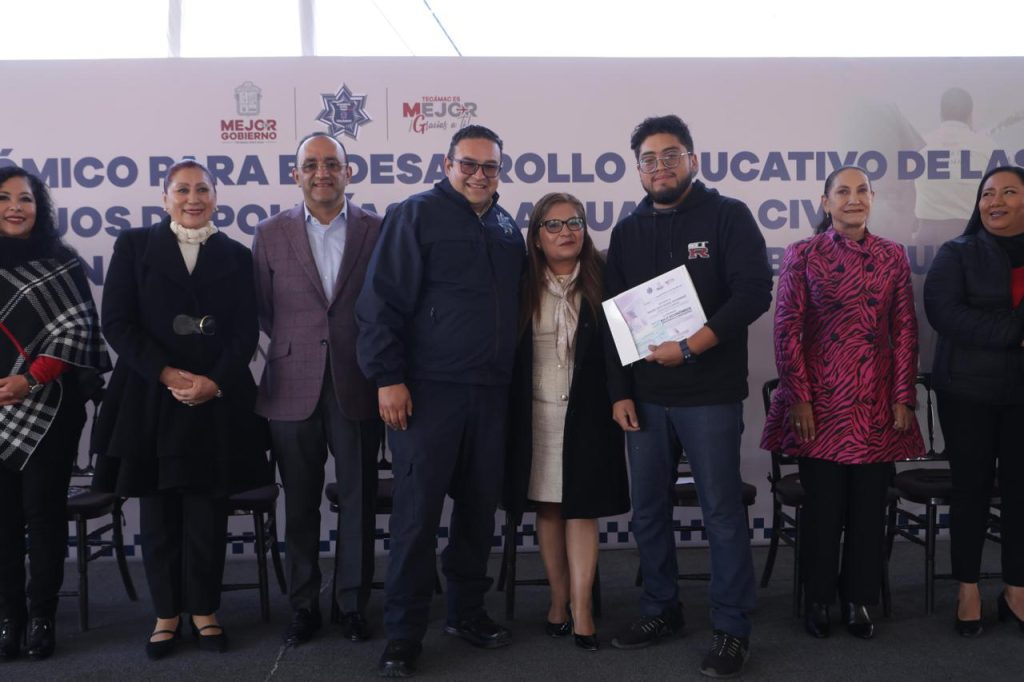 Tecámac, Méx.- El Gobierno de Tecámac entregó Estímulos Económicos para el Desarrollo Educativo de las Hijas e Hijos de Policías de la Guardia Civil, a 228 estudiantes que se distinguieron por su aprovechamiento escolar.