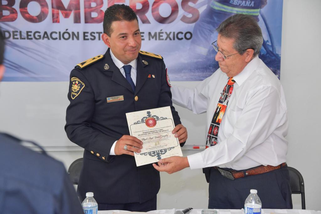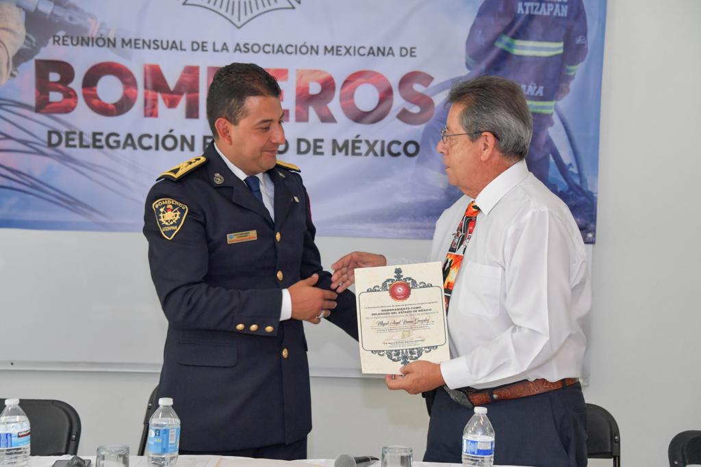 Y otro punto importante de la cita fue anunciar el nombramiento de Miguel Ángel Román González como Delegado de la Asociación Mexicana de Jefes de Bomberos A.C en el Estado de México.
