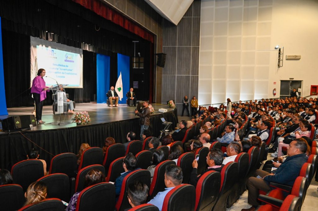 Naucalpan, Méx.- “No debemos seguir sin oír a nuestros jóvenes”, afirmó la alcaldesa Angélica Moya Marín al presentar los resultados de la encuesta aplicada por la organización Planet Youth a 9 mil 336 estudiantes de tercer grado de las 107 escuelas secundarias públicas y privadas de Naucalpan, como parte de los trabajos para prevenir el uso de sustancias nocivas en niñas, niños y adolescentes.