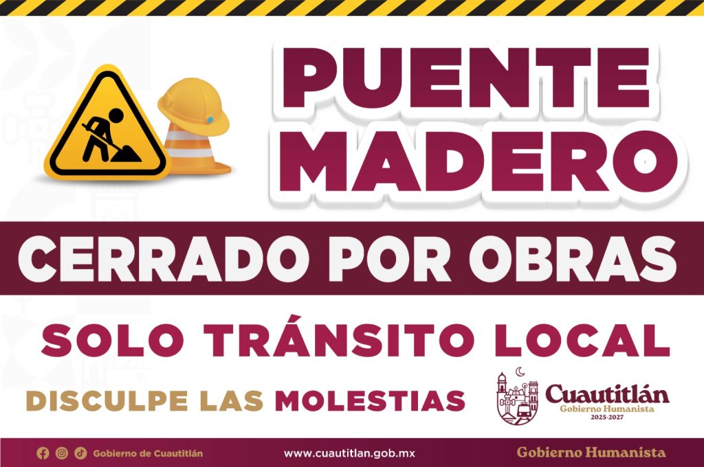 GOBIERNO DE CUAUTITLÁN ANUNCIA CIERRE PARCIAL DEL PUENTE MADERO: SOLO CIRCULACIÓN DE AUTOS LIGEROS