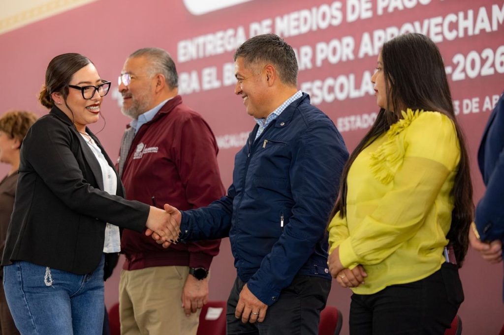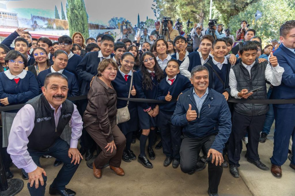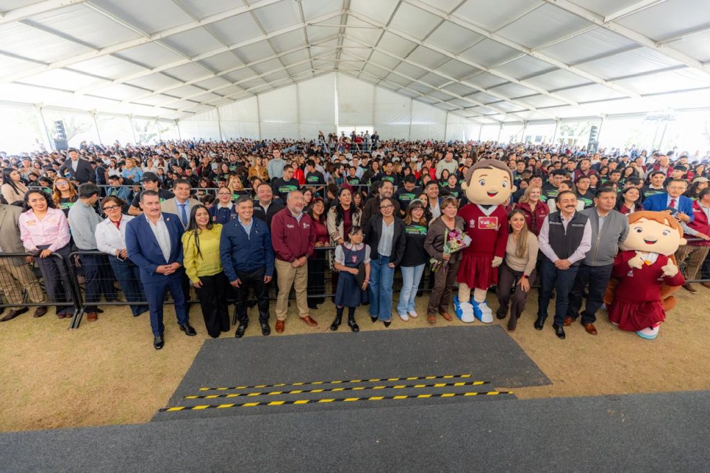 Durante la entrega de los apoyos de infraestructura educativa y los vales de mobiliario escolar, Delfina Gómez destacó que se beneficiarán 62 escuelas en la entidad, con una inversión superior a los 22 millones de pesos. Posteriormente, la gobernadora y el presidente municipal se trasladaron al TESCO para entregar las «Becas para el Bienestar por Aprovechamiento Académico», las cuales beneficiarán a más de 37 mil estudiantes de educación básica, media superior y superior, con un respaldo que representa una inversión superior a los 509 millones de pesos.