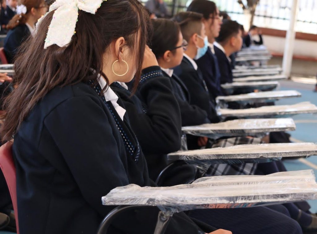 Durante la actual administración se han entregado 1,440 butacas, 65 computadoras, 18 pantallas y 24 pizarrones, además de equipo de laboratorio para 12 planteles, lo que contribuye a elevar la calidad educativa en el municipio.