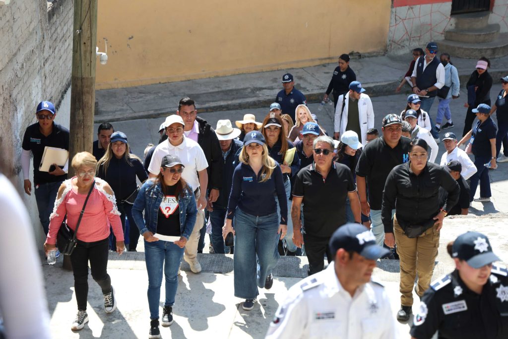 En esta caminata de “Huixquilucan Contigo 24/7”, la alcaldesa Romina Contreras, junto con directores de diversas áreas del gobierno municipal, entregó a vecinos de la colonia Pirules un nuevo gimnasio de barras de calistenia, ubicado en la calle Cedro, donde destacó que este tipo estructuras buscan contribuir al fortalecimiento del tejido social y cuidar la salud física y mental, principalmente, de los jóvenes.