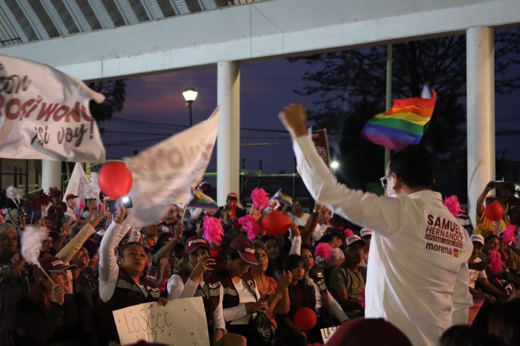 Gutiérrez como senadora, las y los candidatos a diputados locales y federales y a ella como candidata a Presidenta Municipal, al referirse que, en esta elección la votación sea 5 de 5 a favor de morena. “esta es mi tierra, esta es mi casa, ustedes son mi familia” concluyó.