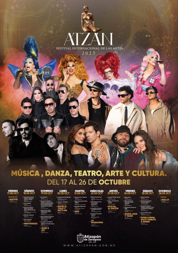 La cartelera del Atzán 2025 está diseñada para el disfrute de todas las edades y gustos, ofreciendo espectáculos gratuitos de la más alta calidad. Las familias de Atizapán podrán disfrutar de artistas de talla internacional como Matute, Jesse & Joy, Reik y Piso 21, además de shows internacionales como Mentidrags, Entre el Cielo y Mictlán, Mucha El Pintor, La Patagonia y La Ópera Prima Rock Tributo a Queen y el gran talento de María León y Yahir. Ademas de una increíble variedad de eventos que incluyen comedia, danza, teatro y exposiciones.
