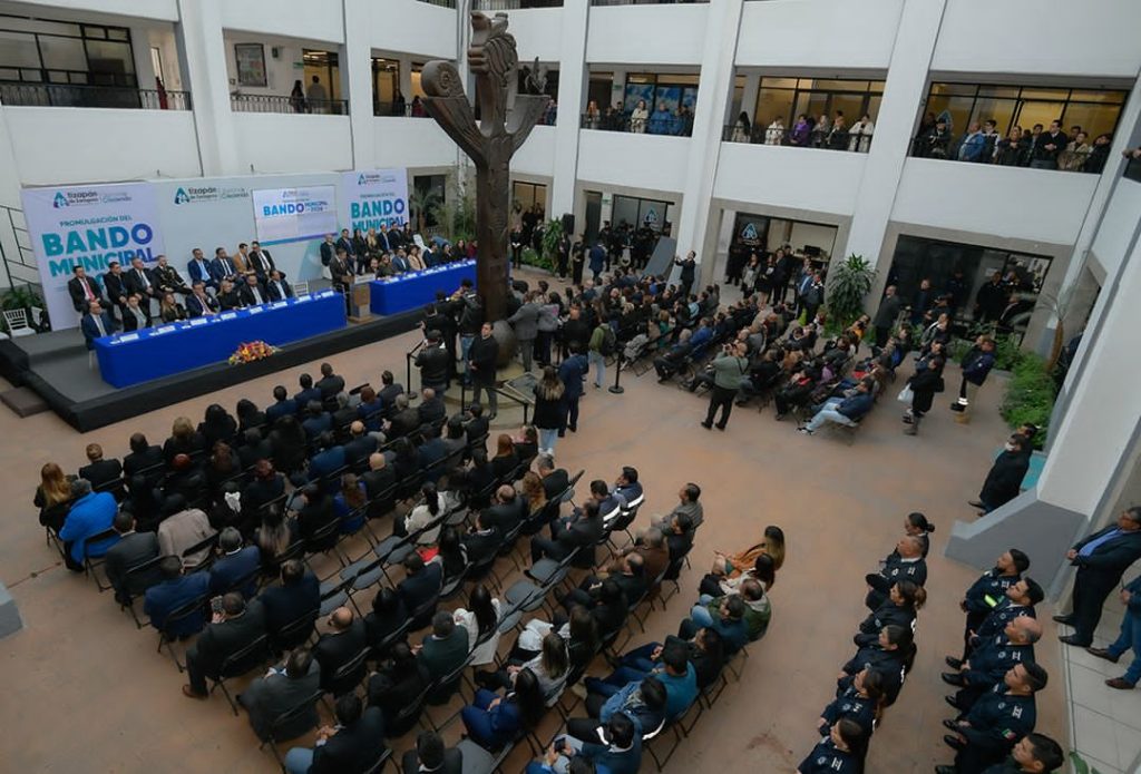 Atizapán, Méx.- El Presidente Municipal, Pedro Rodríguez Villegas, promulgó el Bando Municipal 2026, documento que este año evolucionó para responder a los desafíos del presente, integrando cinco pilares que definen la visión del actual gobierno: cuidado del agua, inclusión y dignidad humana, bienestar animal, acceso a una vida libre de violencia, así como modernización y mejora regulatoria.
