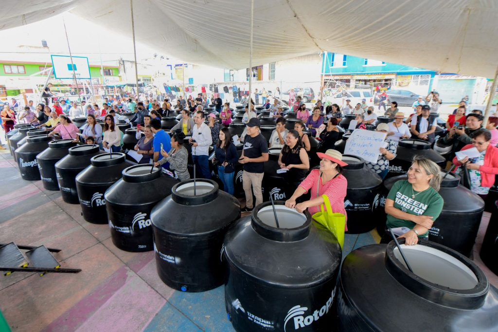 RECIBEN VECINOS DE LAS ZAPATAS Y ATIZAPÁN 2000 MÁS DE 300 TINACOS PARA HACER FRENTE AL DESABASTO DE AGUA