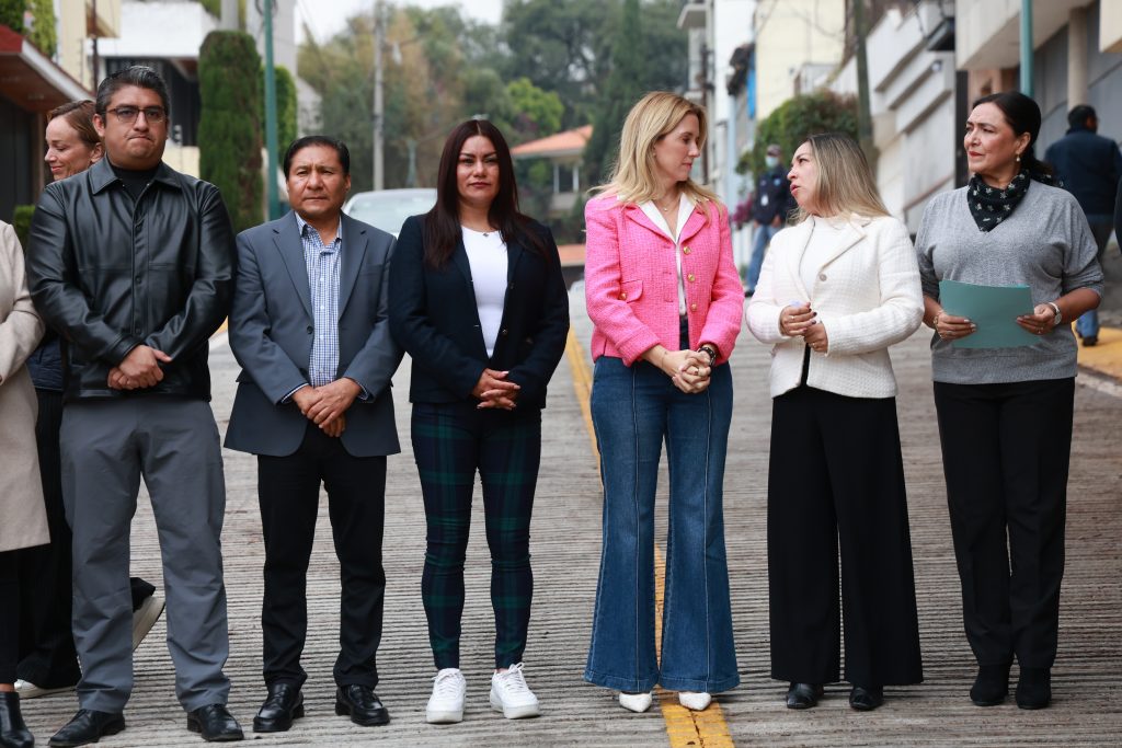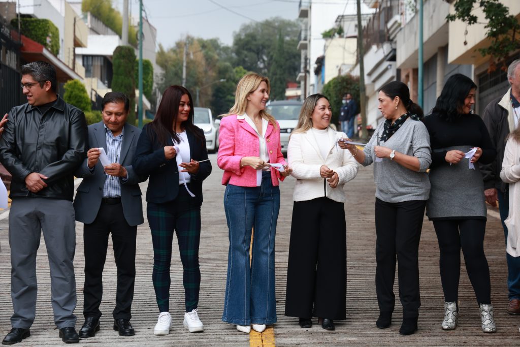 • La presidenta municipal, Romina Contreras, entregó la repavimentación con concreto hidráulico de mil 322 metros cuadrados de la vialidad; obra que es un compromiso que asumió y cumplió con el programa “Huixquilucan Contigo 24/7”
