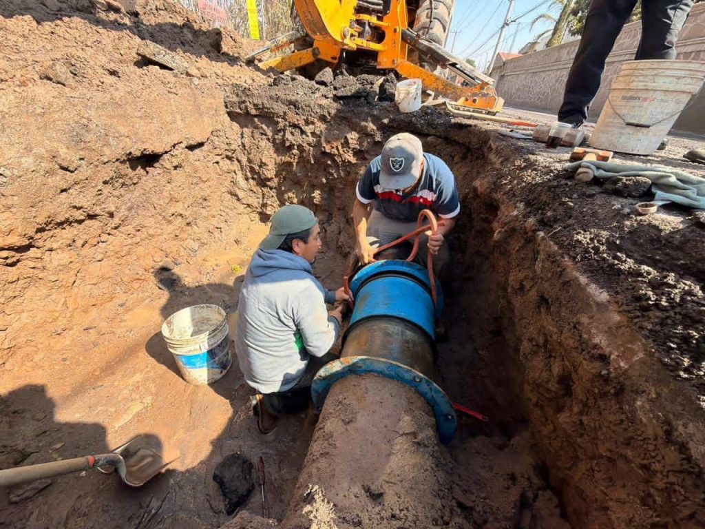 Personal de Operagua realizó ajustes a la línea hidráulica de 16 pulgadas, en la unión de la tubería de acero recientemente sustituida, debido a los efectos del tránsito pesado sobre esta infraestructura.