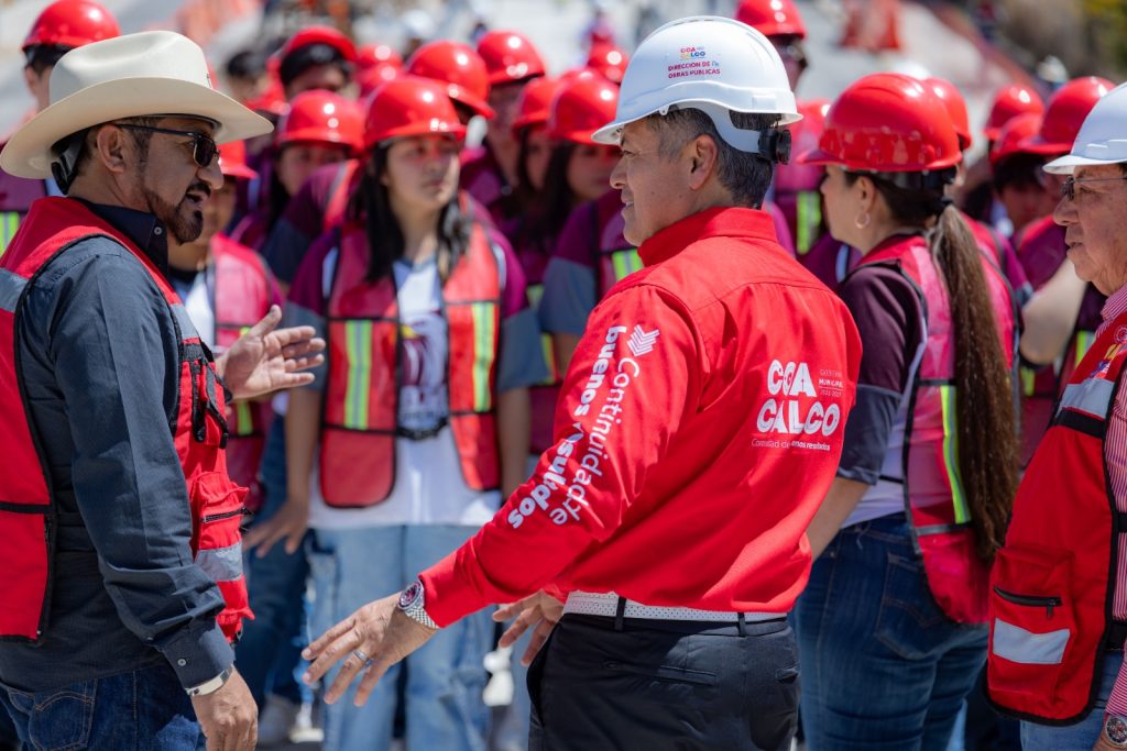 Coacalco, Méx.- Durante una supervisión de la obra del distribuidor vial de Parque Residencial Coacalco, el presidente municipal, David Sánchez Isidoro, recibió a más de 40 estudiantes de cuarto semestre de la carrera de Construcción del CBTis 133 de Villa de las Flores, con quienes convivió y explicó los beneficios de la obra.