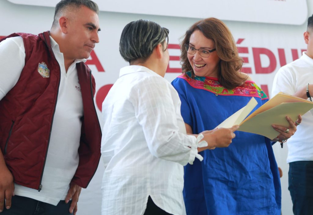 - La presidenta municipal encabezó la entrega de las primeras 8 mil 246 cédulas de funcionamiento de 100 mercados